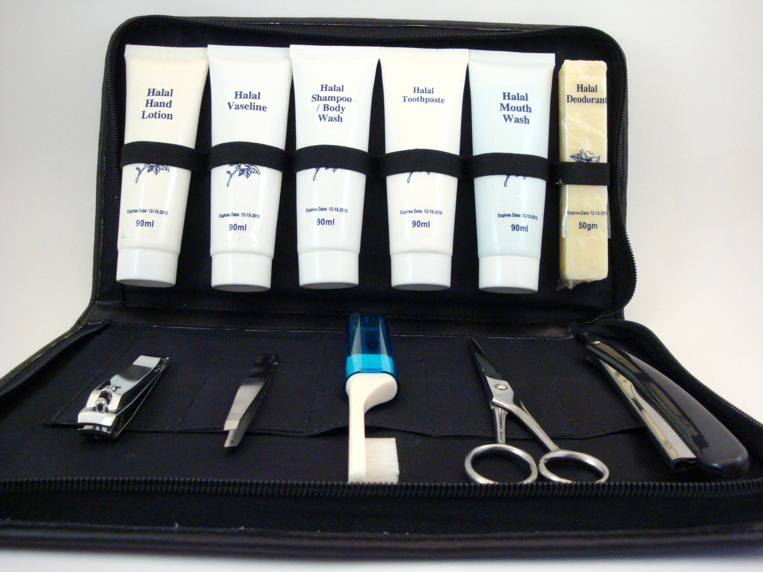 Basic personal care necessities for your hajj or umra all conveniently packaged in zipper case. (Items in bold are not permitted for use in the state of Ihram).